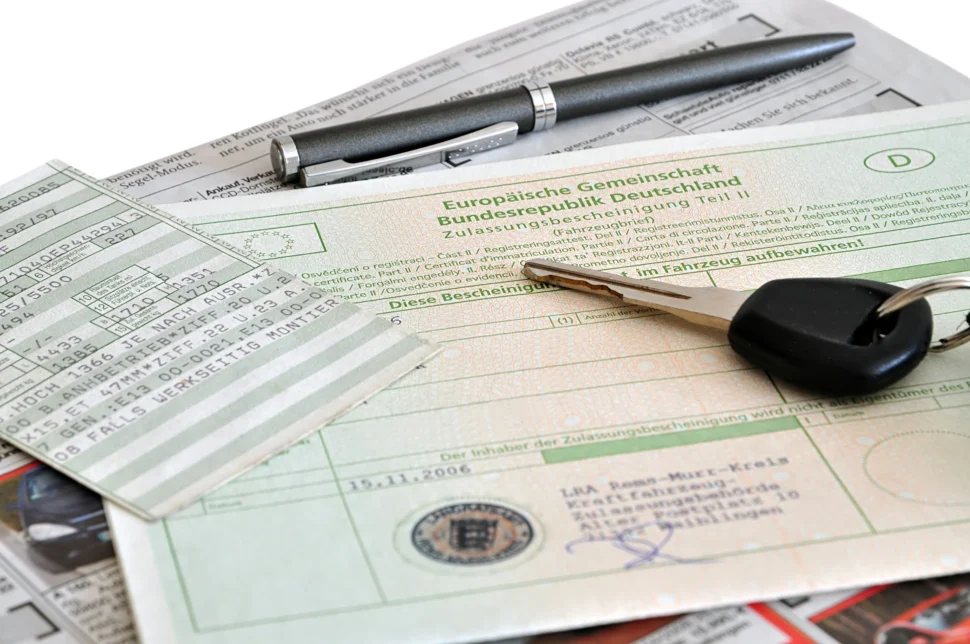 - Fahrzeugschein und Fahrzeugbrief (Teil I und II)